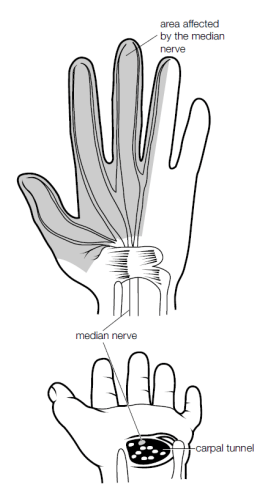 - Irritation to the median nerve pathways either from the wrist or from other areas (neck, shoulder, and elbow).